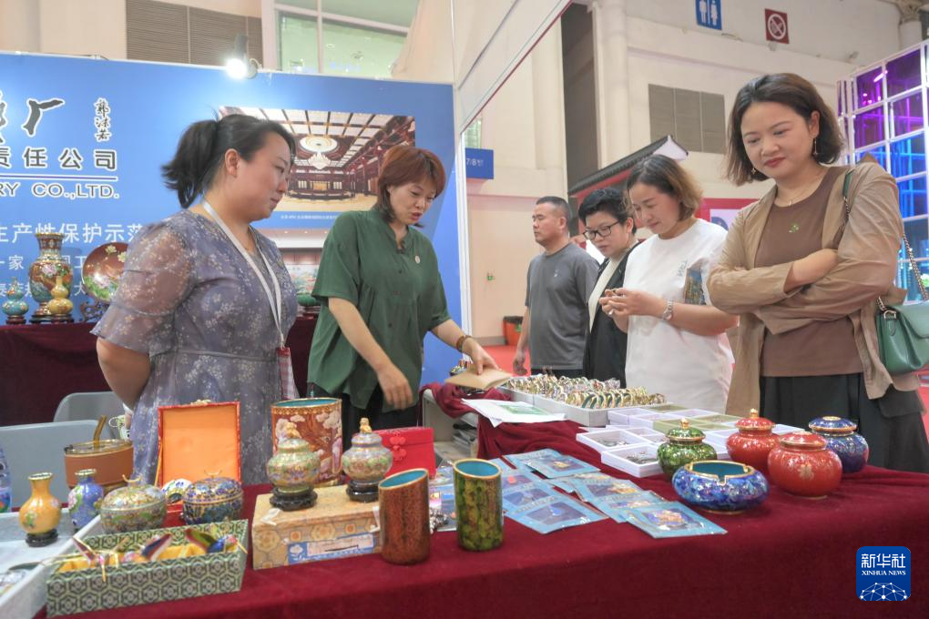 5月10日,观众在博览会现场参观景泰蓝工艺品。