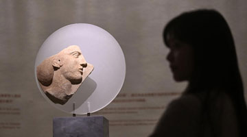 这是11月20日拍摄的来自希腊保罗和亚历珊德拉博物馆的藏品亚历山大头像。