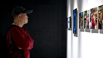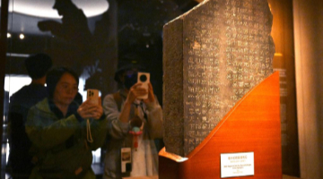 11月20日,参观者在观看古代希腊雕像艺术对古代中国雕像艺术影响的介绍。