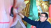 1月9日,在淄博市博山区的西冶工坊,工匠在加工琉璃工艺品。