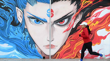 王彪在给影人的头部上色(2月19日摄)。