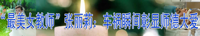 車禍瞬間挽救學(xué)生導(dǎo)致高位截癱的黑龍江省29歲女教師張麗莉,被網(wǎng)友稱贊為“最美女教師”。連日來(lái),張麗莉的感人事跡激發(fā)起社會(huì)各界的愛心傳遞,舍己為人、挺身向前的奉獻(xiàn)精神正成為中國(guó)年輕一代道德價(jià)值體系中的火炬和航標(biāo)。 張麗莉,女,1983年生,大學(xué)本科,黑龍江省佳木斯市第十九中學(xué)的語(yǔ)文教師。2006年,她從大慶師范學(xué)院文學(xué)院03級(jí)本科班畢業(yè)后,分配到佳木斯市第十九中學(xué)任教。她在2012年5月8日的交通事故中,為救學(xué)生而受重傷,致使雙腿截肢。2012年5月15日、5月16日,張麗莉獲“全國(guó)五一勞動(dòng)獎(jiǎng)?wù)隆薄⑷珖?guó)三八紅旗手等榮譽(yù)稱號(hào)。