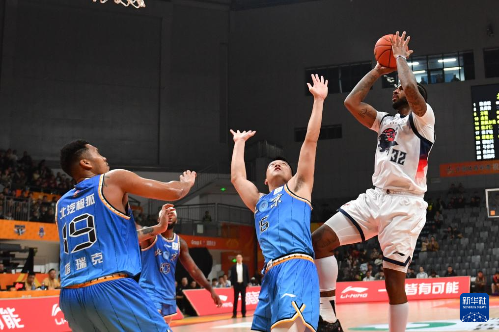 12月7日,北京北汽队球员杰曼(右二)在比赛中上篮。
