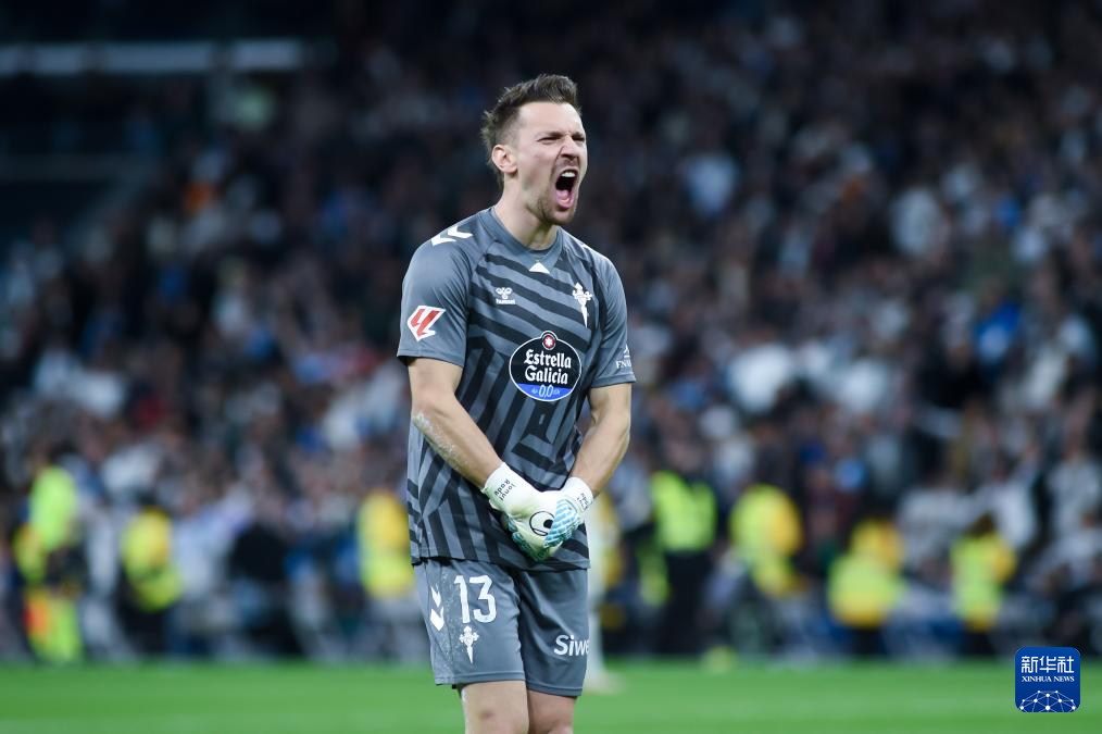 12月7日,塞尔塔队门将球员拉杜庆祝。