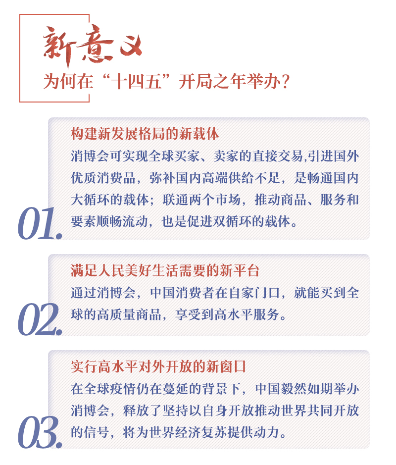??? 本屆消博會圍繞海南 "國際旅游消費中心"建設,匯聚海南自貿港政策優勢,打造國際消費精品的全球展示和交易平臺。“消博會可實現全球買家、賣家的直接交易,引進國外優質消費品,彌補國內高端供給不足,是暢通國內大循環的載體;聯通兩個市場,推動商品、服務和要素順暢流動,也是促進雙循環的載體”,對于舉辦消博會的意義,商務部副部長王炳南這樣闡釋。