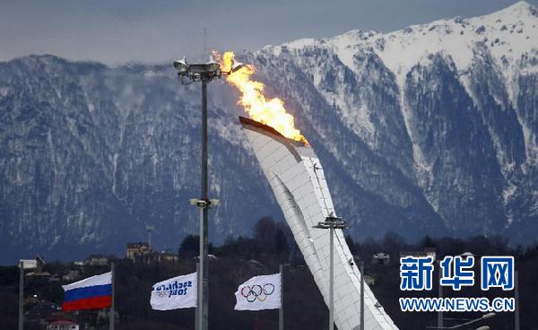 ??? 1月27日,2014年索契冬奧會(huì)主火炬塔進(jìn)行了試燃,圣火在高加索山下熊熊燃燒。