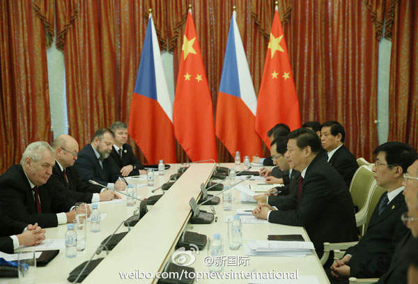 ????新華網(wǎng)北京2月7日電 據(jù)新華社“新國際”微博報道,習(xí)近平7日在索契會見捷克總統(tǒng)澤曼時說,今年是中捷建交65周年,捷克也剛組建新政府。雙方要以此為新的良好開端,就兩國關(guān)系指導(dǎo)原則和發(fā)展方向達(dá)成新共識。中方重視捷克在歐盟內(nèi)發(fā)揮的獨特作用,贊賞捷克積極致力于促進(jìn)中東歐國家同中國的合作。