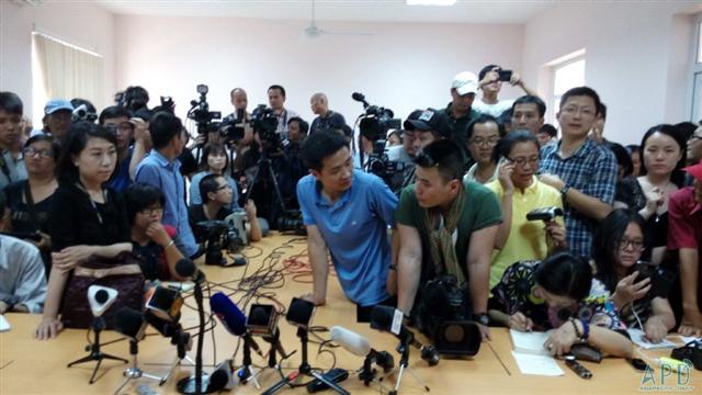 圖為設(shè)在富國(guó)島的越南搜救前線指揮辦公室,各國(guó)記者在等待新聞發(fā)布會(huì)的召開。