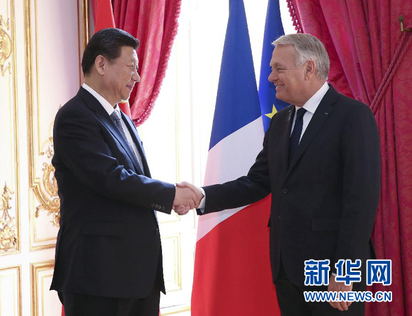 3月27日,國家主席習(xí)近平在巴黎會(huì)見法國總理艾羅。 新華社記者 龐興雷攝