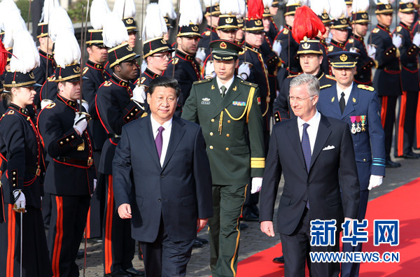 ????3月30日,中國國家主席習(xí)近平在布魯塞爾會見比利時(shí)國王菲利普。會見前,習(xí)近平出席菲利普國王在王宮廣場舉行的隆重歡迎儀式。新華社記者 鞠鵬 攝