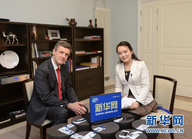 比利時王國駐華大使馬懷宇與新華網記者。新華網記者郭小天攝