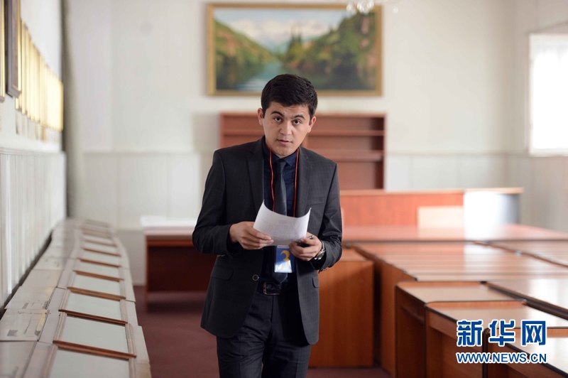 4月25日,烏茲別克斯坦塔什干國立東方學院大禮堂,世界經濟與外交大學穆哈爾丁正在準備參加比賽。