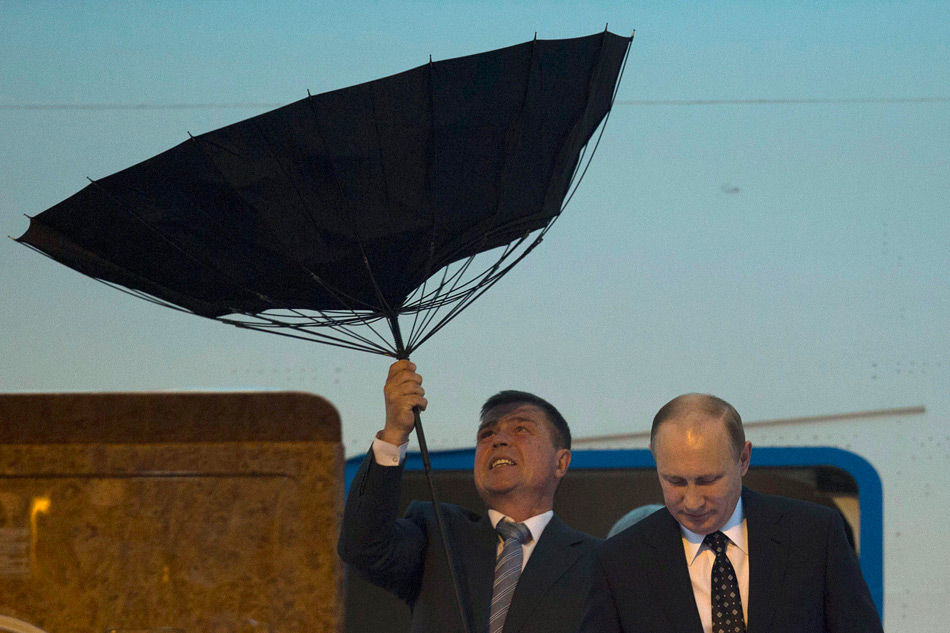 20日凌晨4時許,普京專機抵達上海虹橋機場。圖為普京走下飛機。
