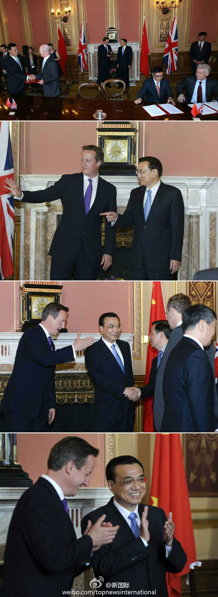 ???? 新華網(wǎng)北京6月18日電 據(jù)新華社“新國際”微博報(bào)道,當(dāng)?shù)貢r(shí)間17日下午,國務(wù)院總理李克強(qiáng)與英國首相卡梅倫舉行會(huì)談后,共同見證了有關(guān)雙邊合作文件的簽署。中英雙方共簽署數(shù)十項(xiàng)政府和商業(yè)間協(xié)議,取得多方面合作突破。內(nèi)容涉及金融、科技、教育、能源、基礎(chǔ)設(shè)施建設(shè)等多個(gè)領(lǐng)域,總額超過300億美元。?
