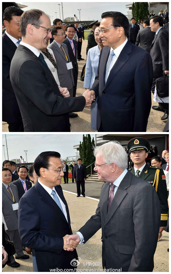 新華網北京6月20日電 據新華社“新國際”微博報道,李克強總理在圓滿結束對英國的正式訪問并舉行中英總理年度會晤后,于當地時間19日上午乘專機離開倫敦,赴希臘開始正式訪問。英國政府高級官員和中國駐英國大使劉曉明等到機場送行。