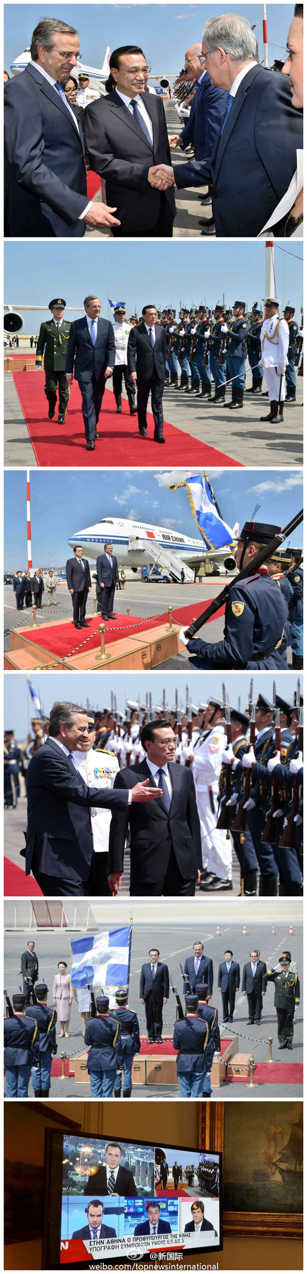 新華網(wǎng)北京6月20日電 據(jù)新華社“新國際”微博報(bào)道,李克強(qiáng)總理偕夫人程虹19日下午乘專機(jī)抵達(dá)雅典,開始對希臘的正式訪問,希臘總理薩馬拉斯和夫人到機(jī)場迎接。現(xiàn)場奏響中希兩國國歌,李克強(qiáng)在薩馬拉斯陪同下檢閱了儀仗隊(duì)。希臘是西方文明發(fā)源地,這是李克強(qiáng)總理首次訪希,將推進(jìn)雙方海洋、文化等領(lǐng)域合作。