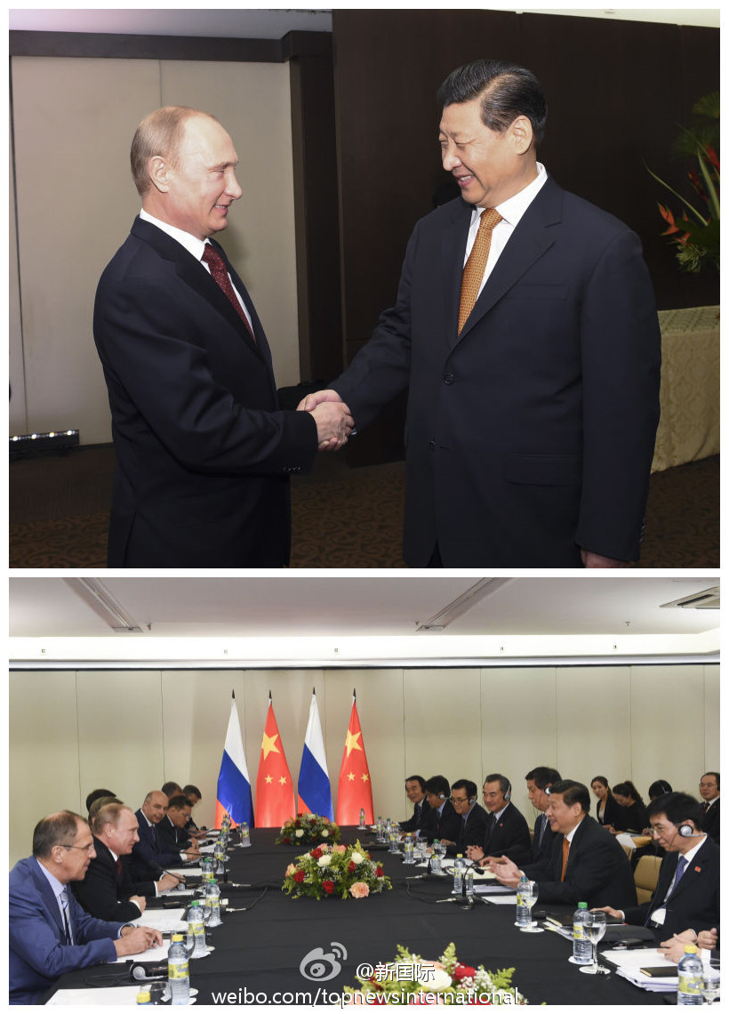 ????? 新華網北京7月15日電 據新華社“新國際”微博報道,習近平主席14日在巴西會見俄羅斯總統普京。習近平表示,對中俄合作,我們言必信,行必果。希望雙方趁熱打鐵,不折不扣落實好我們達成的共識。雙方要在國際事務中開展更多共同行動,攜手推動金磚國家合作,提升話語權和影響力。