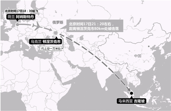 俄羅斯民航部門消息人士告訴路透社記者,這架馬來西亞客機沒有在預(yù)定時間進入俄羅斯領(lǐng)空,墜毀于烏克蘭東部地區(qū)。