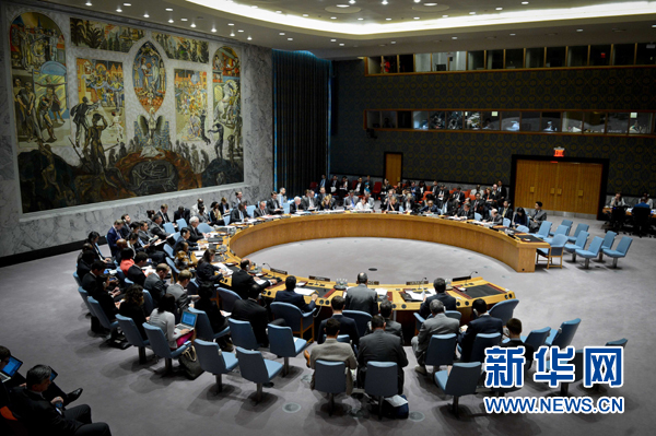 ??? 7月18日,聯(lián)合國安理會在紐約聯(lián)合國總部就烏克蘭局勢舉行緊急會議。聯(lián)合國安理會18日就烏克蘭局勢舉行緊急會議。安理會本月輪值主席、盧旺達常駐聯(lián)合國代表加薩納在會議前向媒體宣讀聲明,呼吁根據(jù)國際民航準則對馬航空難進行全面、徹底、獨立的國際調(diào)查,并追究相關(guān)責任。新華社記者牛曉雷攝