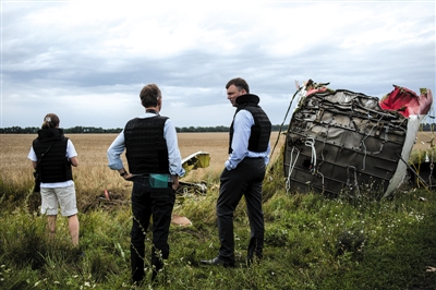 這里就是馬航MH17墜毀的現場。當地時間18日,歐洲安全與合作組織(歐安組織)調查小組的發言人邁克爾·波茨科夫率領調查團隊來到這里。他說,自己如同置身世界上最大的犯罪現場。