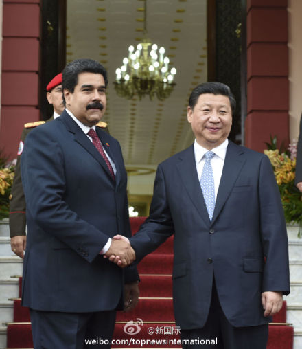 ????新華網(wǎng)北京7月21日電 據(jù)新華社“新國際”微博報道,習(xí)近平20日同馬杜羅總統(tǒng)會談時說,我們要加強頂層設(shè)計,以金融和投資為引擎,以能源合作為主軸,基礎(chǔ)設(shè)施建設(shè)、農(nóng)業(yè)、礦業(yè)、科技合作等多個輪子一起轉(zhuǎn),促進中委合作全方位發(fā)展。(李學(xué)仁攝)
