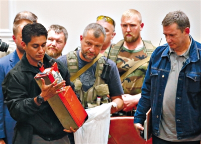 22日,烏克蘭頓涅茨克,烏克蘭民間武裝將MH17的兩個黑匣子移交給馬方調(diào)查組。馬方調(diào)查人員稱,黑匣子“只有輕微損傷,基本完整無缺”。