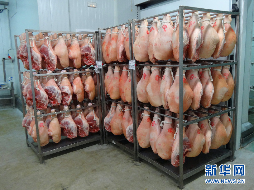 ????“因特珀爾克”公司的一位負責人何塞?拉蒙(Jose Ramon)先生向記者介紹說,為了保證產品的質量,根據歐盟食品安全法規,西班牙生豬的飼料、喂養、處理、配送都會受到嚴格的監控。比如“卡薩德蒙特”公司,送到這里的每條生豬腿都有自己的編號,并且這個編號會跟隨制作火腿的整個過程,這樣最終出現在市場上的每一件火腿產品,都可以追溯其原料來源和加工過程。