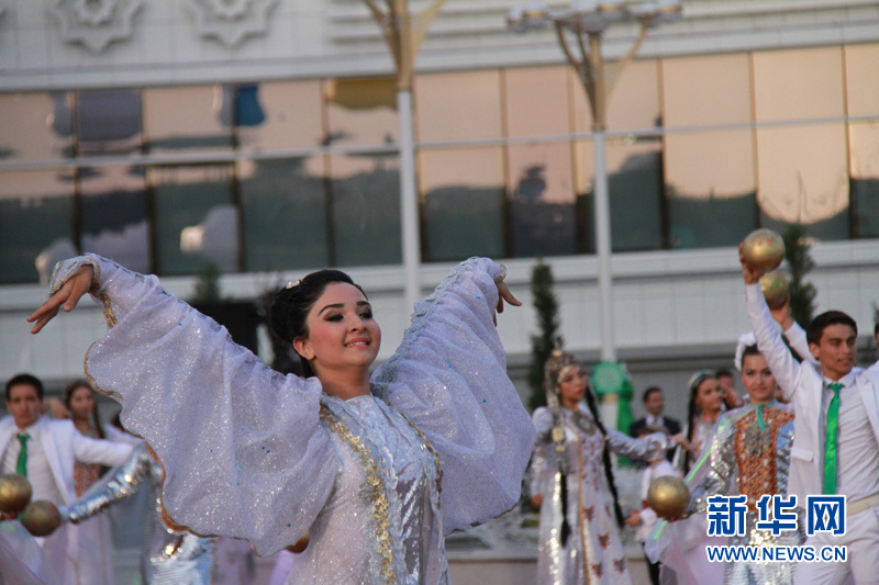 身著節日盛裝的土庫曼斯坦美女在跳舞 記者 盧敬利攝