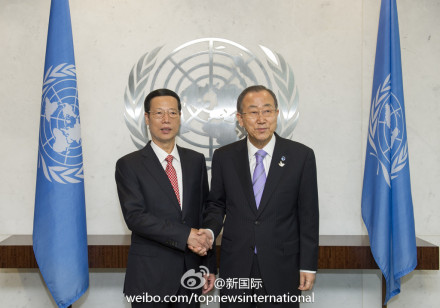 ????新華網北京9月23日電 據新華社“新國際”微博報道,國家主席習近平特使、國務院副總理張高麗22日在聯合國總部會見聯合國秘書長潘基文時表示,中國高度重視應對氣候變化問題,高度重視聯合國在此方面的作用,愿繼續加強與聯合國合作,將提供600萬美元支持聯合國秘書長推動應對氣候變化的南南合作。