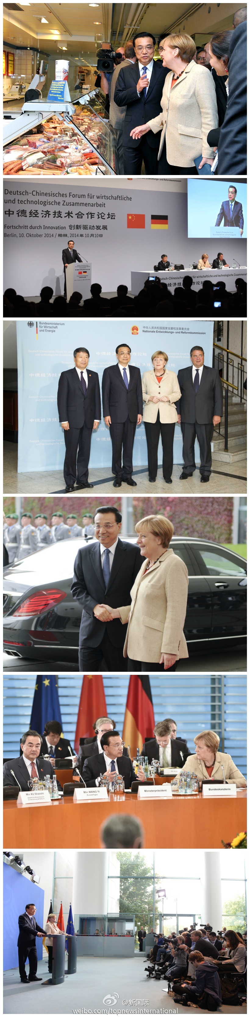 ??? 新華網北京10月11日電? 據新華社“新國際”微博報道,10日,李克強對德國訪問日程異常繁忙。兩國總理共同主持了規模空前的第三輪中德政府磋商,出席了中德經濟技術論壇、簽字儀式,共見記者,參觀皇家瓷器廠……當天默克爾同李總理一起出席了12場活動,長達10個小時的深度會晤,共同規劃中德務實合作升級版。