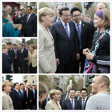 事件:李總理和默總理共同乘車前往出席中德經(jīng)濟技術(shù)論壇,途中他們臨時停車,與在街頭的德國民眾親切交流互動。