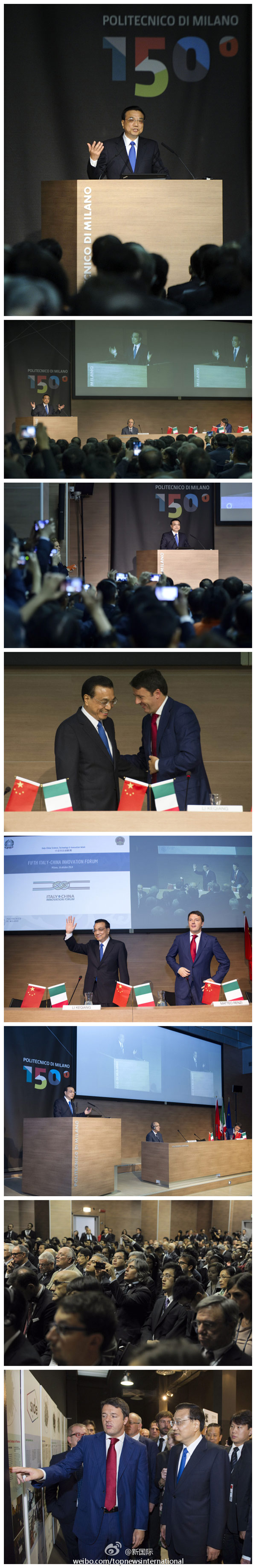 ????新華網(wǎng)北京10月16日電 據(jù)新華社“新國際”微博報道,李克強總理16日在意大利總理倫齊陪同下在米蘭理工大學出席中意創(chuàng)新周大會時說,我們的時代是創(chuàng)新的時代,科技創(chuàng)新不僅來自對科學的了解,對技術的把握,也源自創(chuàng)意,希望中意青年用東西方智慧碰撞出更多“奇思妙想”,讓創(chuàng)意促進創(chuàng)新,進而提升兩國產(chǎn)業(yè)競爭力。