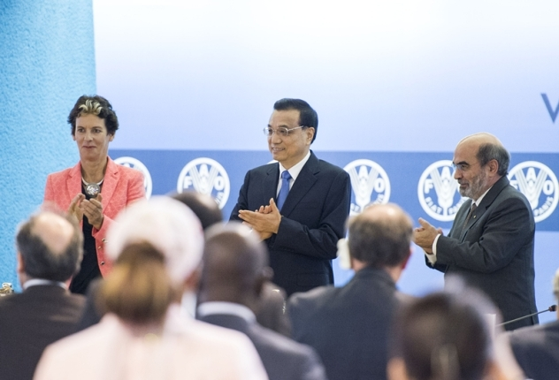 ????面對(duì)聯(lián)合國(guó)三大糧農(nóng)機(jī)構(gòu)的數(shù)百名代表,克強(qiáng)總理發(fā)表演講。從中國(guó)元素、中國(guó)經(jīng)驗(yàn)到中國(guó)聲音,克強(qiáng)總理對(duì)糧農(nóng)組織的訪問(wèn)讓世界看到了應(yīng)對(duì)饑餓和貧困的中國(guó)希望。