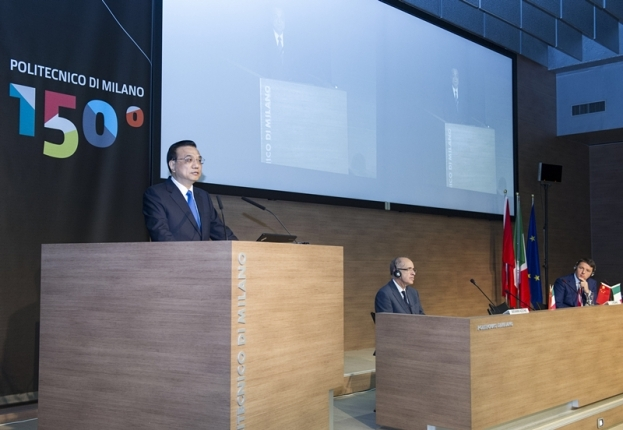 克強總理的到來受到了米蘭理工大學師生的熱烈歡迎,大家揮舞著手中的兩國國旗,歡呼著迎接克強總理的到來,不少學生紛紛拿出手機拍照。除了米蘭理工大學的師生,參加今天活動的還有不少中意兩國創新行業的企業家。
