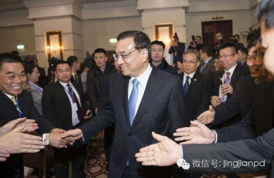李克強參加中哈企業家委員會會議后,離開會場時與企業家們握手