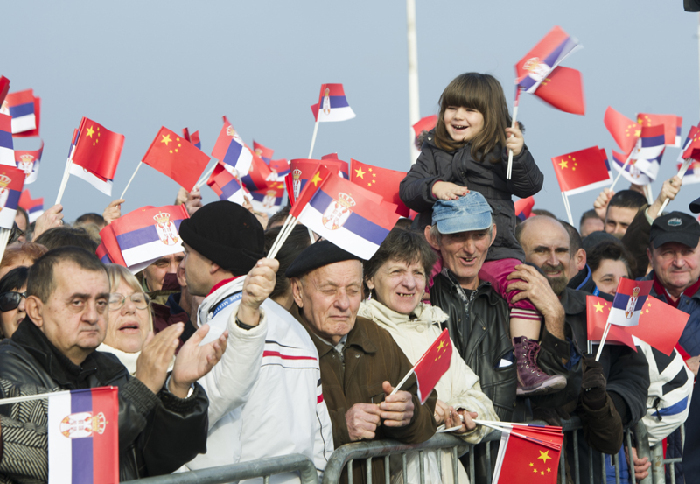 貝爾格萊德跨多瑙河大橋竣工儀式上的塞爾維亞民眾。新華社 黃敬文 攝