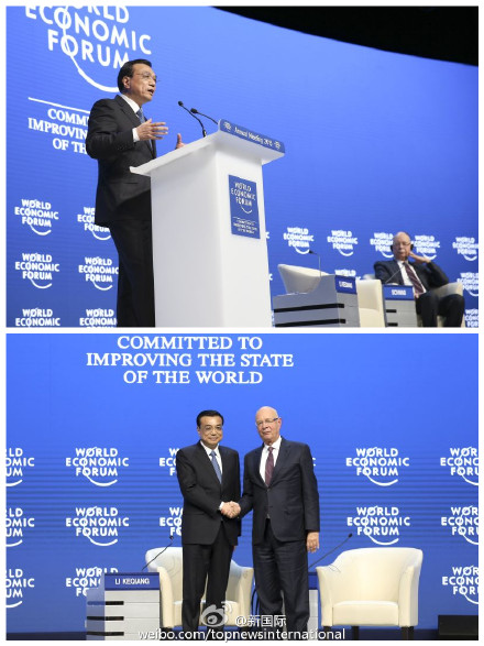 ??? 新華網北京1月22日電 據新華社“新國際”微博報道,李克強總理21日在世界經濟論壇年會上發(fā)表特別致辭,為應對全球新局勢提出三大主張。他說,面對復雜的國際局勢,要堅定維護和平穩(wěn)定;面對多元的世界文明,要共同促進和諧相處;面對多變的經濟形勢,要大力推動開放創(chuàng)新。