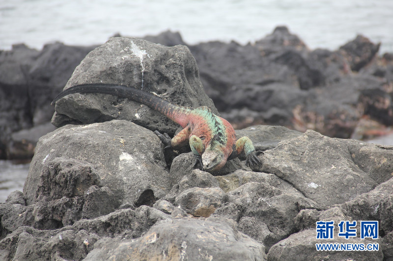 ??? 位于加拉帕戈斯群島南部的佛羅雷阿納(Floreana)島上的海鬣蜥在漆黑的礁石上曬太陽提高體溫,這種冷血動物靜靜匍匐,可以半天一動不動。