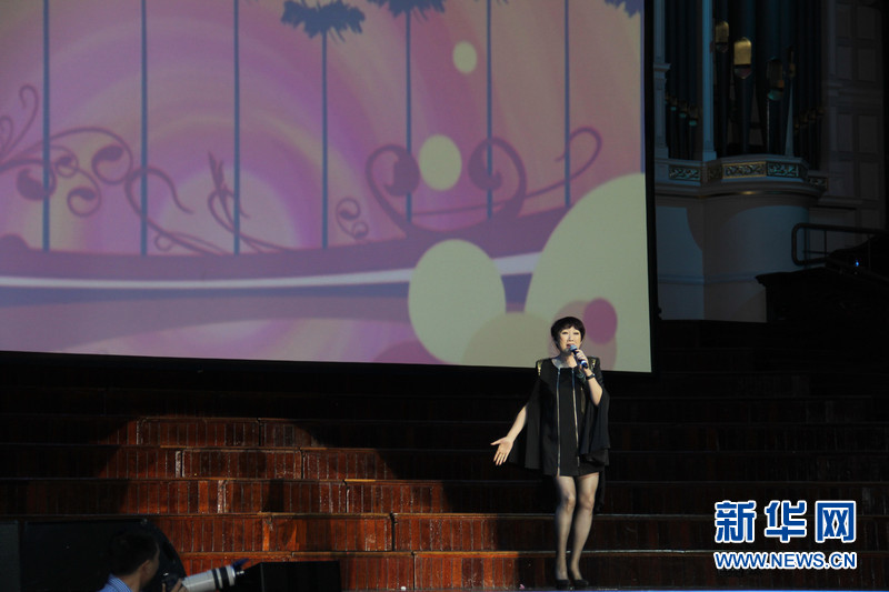 ??????? 2月25日,由中國國務(wù)院僑辦和中國海外交流協(xié)會聯(lián)合主辦的“文化中國·四海同春”在悉尼舉辦大洋洲團(tuán)的首場演出,歌手成方圓、中國好聲音學(xué)員李維、周深等國內(nèi)知名表演者和中澳藝術(shù)團(tuán)體為當(dāng)?shù)厝A僑華人送來新春祝福。圖為東方歌舞團(tuán)著名歌手成方圓演唱《童年》。新華社記者趙小娜攝