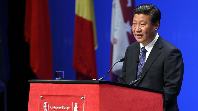 2014年4月1日,國家主席習近平在比利時布魯日歐洲學院發表重要演講。新華社記者龐興雷攝