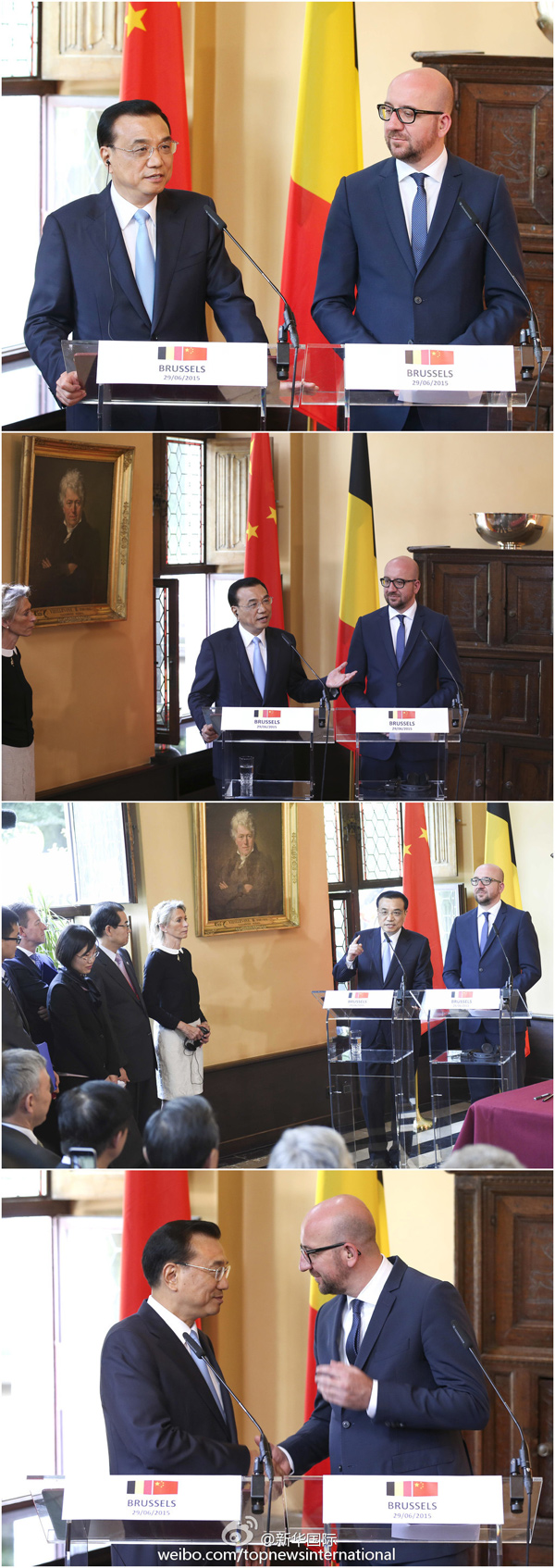 新華網北京6月29日電? 據新華社“新華國際”微博報道,李克強總理29日與比利時首相米歇爾共見記者時說,發展中國家處于工業化初期,需要相關裝備和生產線;中國已進入工業化中期,擁有優勢富余產能;比利時等發達國家處于后工業化階段,有先進技術和裝備。三方合作惠及各方,可推動世界經濟復蘇。?