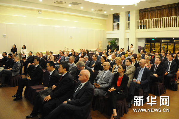 ??? 7月16日,第十屆歐洲外交官研討班開班儀式暨《中國歐盟建交40周年》紀念畫冊發行儀式在京舉行,共有31位來自歐洲各國及歐盟機構的駐華使節出席研討班開班儀式。 新華網記者 張藝 攝