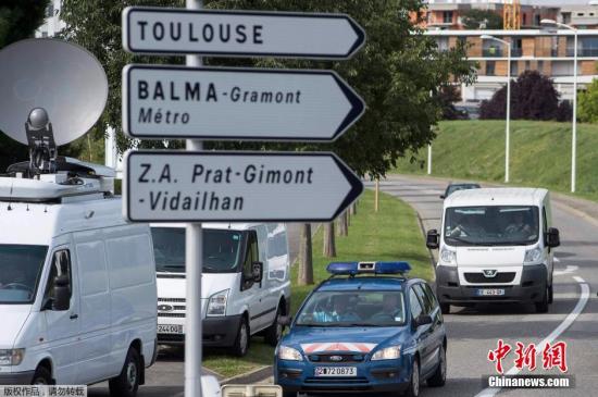 當地時間2015年8月1日,法國巴爾馬,在法屬留尼旺島發現的疑似波音777機翼殘骸抵達法國,警衛隊護送運載該殘骸的車輛前往法國南部城市圖盧茲附近的國防部實驗室。