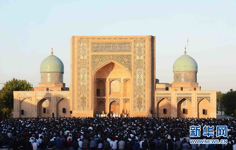 9月24日,在烏茲別克斯坦首都塔什干哈斯特·伊瑪姆建筑群清真寺廣場,人們參加古爾邦節禮拜。當天,烏茲別克斯坦各地慶祝伊斯蘭教傳統節日古爾邦節。“古爾邦節”亦稱“宰牲節”,是伊斯蘭教三大節日之一。 新華社記者沙達提 攝
