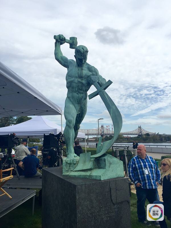 蘇聯(lián)贈送的雕塑“鑄劍為犁”。