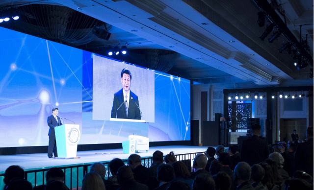 11月18日,國家主席習近平在菲律賓馬尼拉出席亞太經合組織(APEC)工商領導人峰會并發表主旨演講。(新華社記者王曄攝)