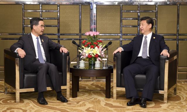 11月18日,國家主席習近平在菲律賓馬尼拉會見前來出席亞太經合組織第二十三次領導人非正式會議的香港特別行政區行政長官梁振英。(新華社記者謝環馳攝)