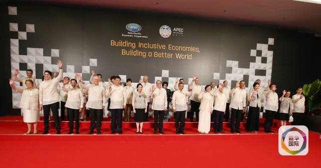 11月18日,國家主席習近平在菲律賓馬尼拉出席亞太經合組織第二十三次領導人非正式會議歡迎晚宴。這是晚宴前,習近平同各成員經濟體領導人、代表及配偶合影。(新華社記者姚大偉攝)