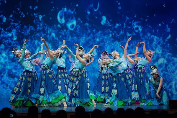 2015年3月26日,中國-中東歐國家旅游合作促進年啟動儀式在布達佩斯斯舉行 。圖為中國舞蹈演員在啟動儀式上表演大型歌舞《多彩貴州風》。(新華社發)