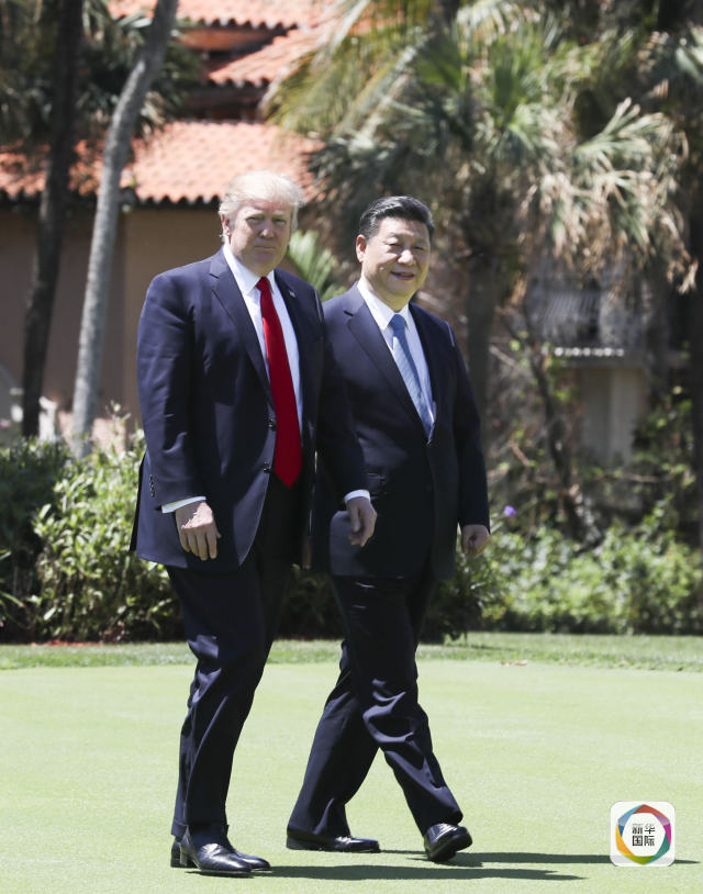 當地時間4月7日,國家主席習近平在美國佛羅里達州海湖莊園同美國總統特朗普舉行中美元首第二場正式會晤。會晤后,習近平同特朗普到秀麗宜人的海湖莊園中散步,在輕松友好的氣氛中繼續就兩國友好合作進行討論。(新華社記者饒愛民攝)